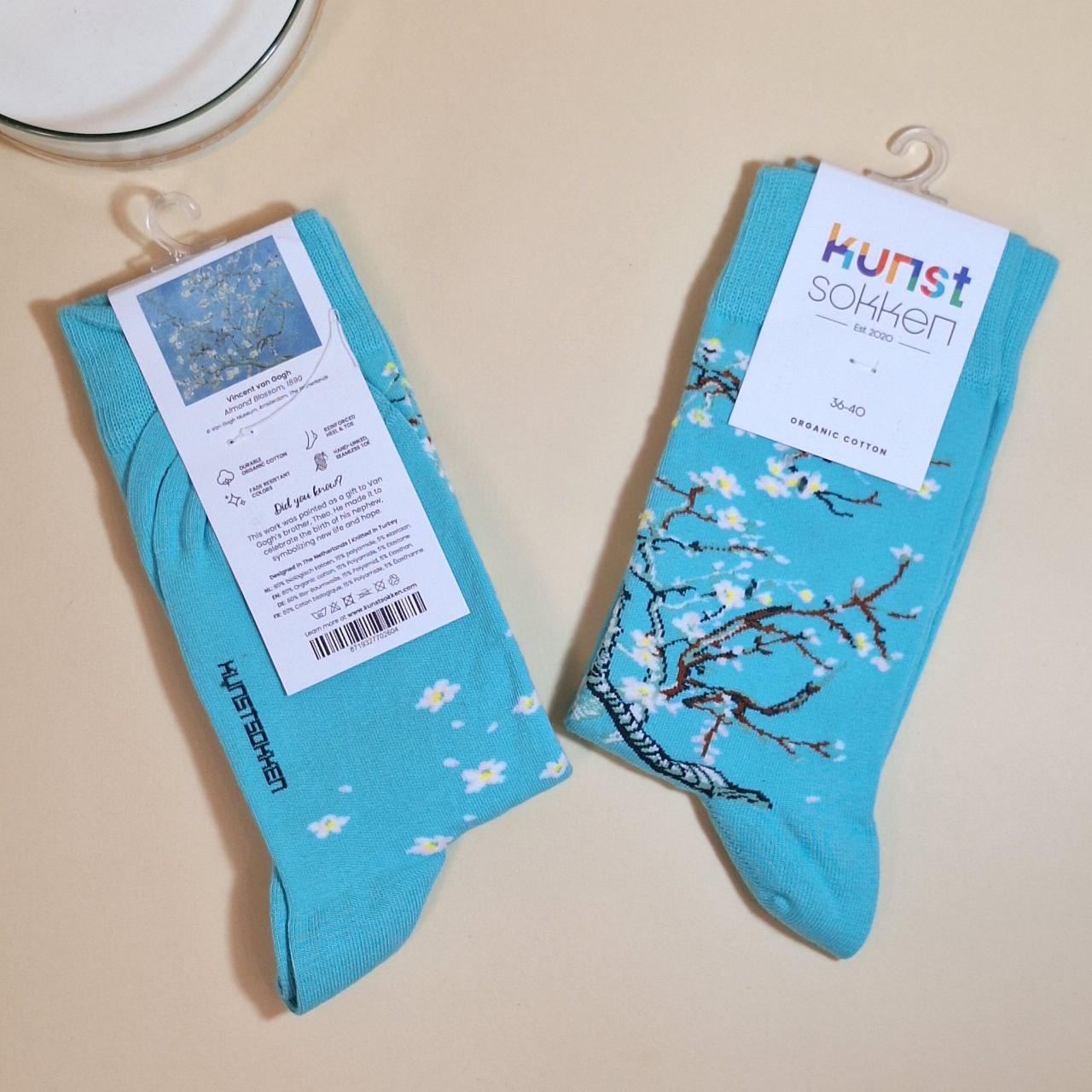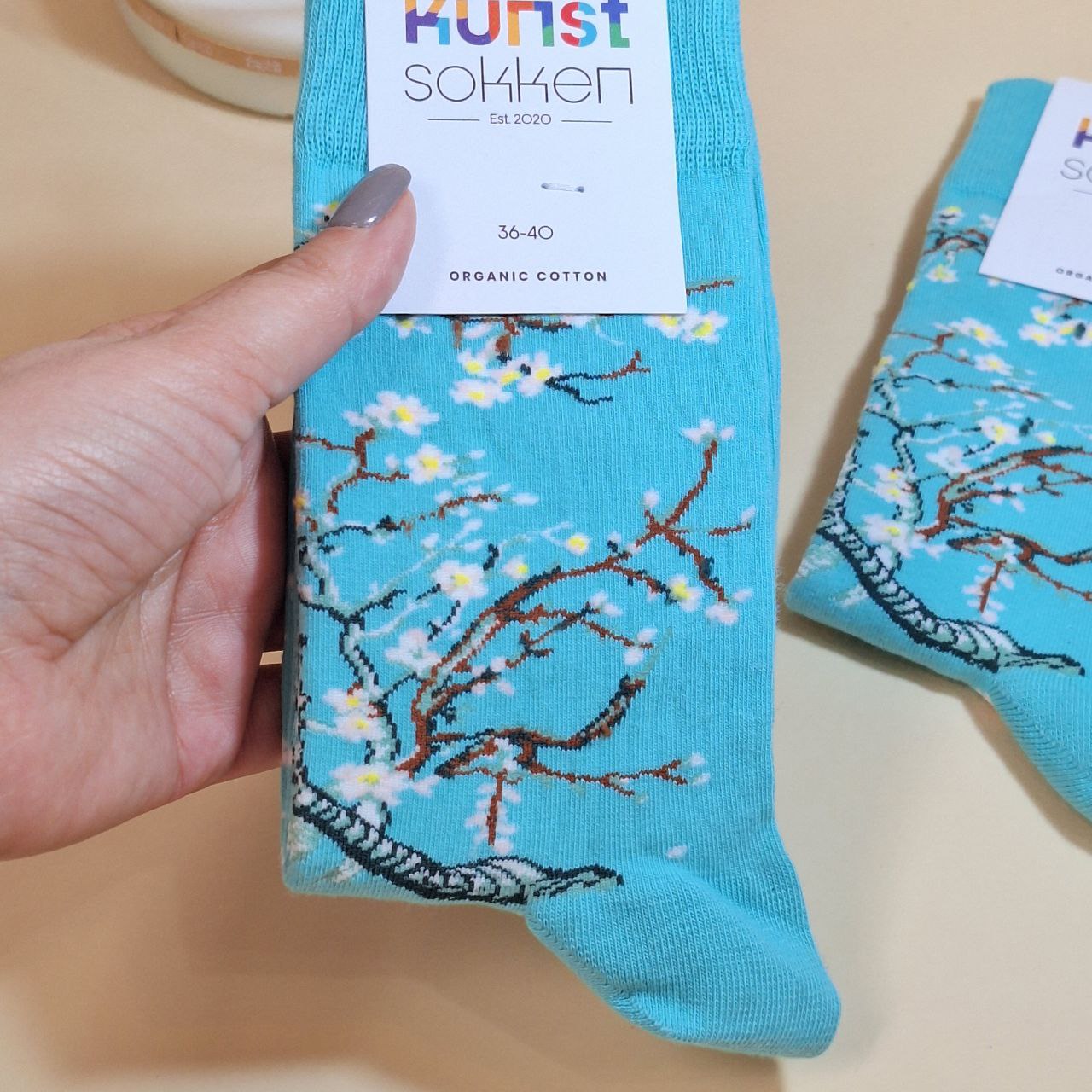 جوراب ساقدار زنانه طرح شکوفه بادام انتخابی خاص و هنری برای خانمهایی است که به استایل متفاوت اهمیت میدهند. طراحی این جوراب با الهام از نقاشی معروف شکوفه بادام ونگوک انجام شده و جلوهای جذاب و منحصربهفرد به پوشش شما میبخشد.