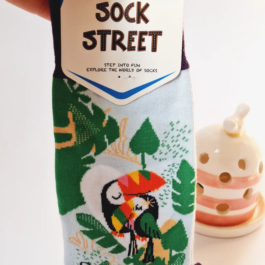 جوراب ساقدار زنانه با طرح پرنده توکا – فانتزی، خاص و با کیفیت بالا از برند sock street ترکیه