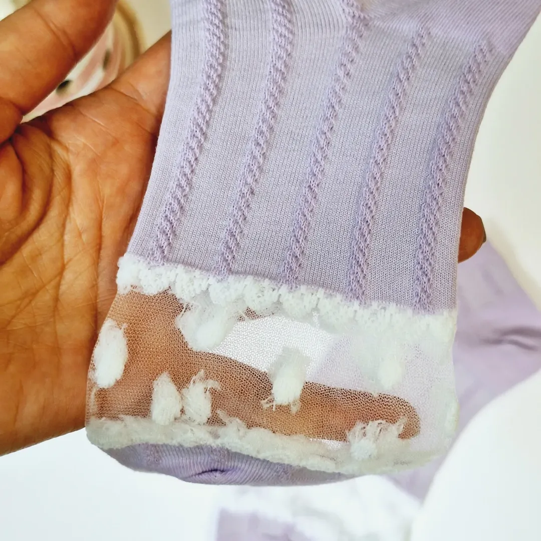 جوراب مچی توری یاسی زنانه مجلسی، انتخابی شیک و جذاب برای خانمهای خوشسلیقه است.